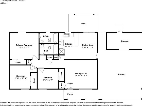 This 1176 square foot single family home has 3 bedrooms and 2.0 bathrooms. This home is located at 3613 W Royal Palm Rd, Phoenix, AZ 85051.