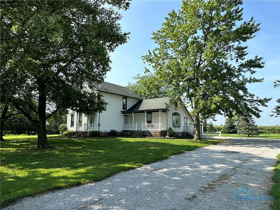 Charming country farmhouse with beautiful porch. 4 beds, 2 full baths, formal dining, extra-large living, hardwood under carpet, updated kitchen w/ laminate flooring, quartz countertops & oak cabinets. Sideload garage w/ attic storage, situated on 4-acres of land. Fenced in horse pasture. Includes horse barn with stalls, electric and water. Shed for extra storage. Perfect location. Quiet setting and the most beautiful sunsets!