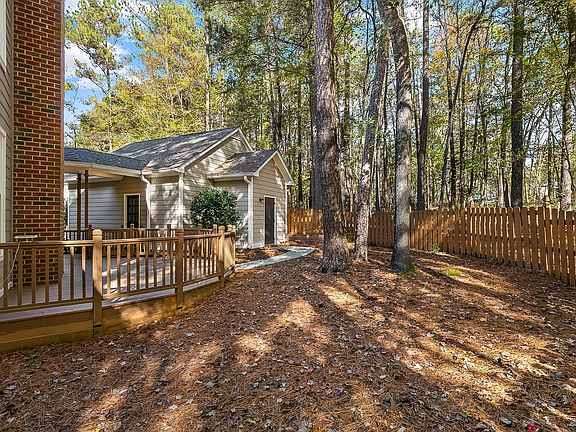 This incredible move-in ready home is located in desirable Whippoorwill Valley of Wake Forest (No HOA, No City Tax). The lot is one of the best in this established neighborhood right by a serene cul-de-sac. The home features a spacious living room with tall ceiling. The beautiful backyard has a large custom wood deck perfect for entertaining friends and family. Nature lovers can enjoy the beautiful mature landscaping, decorative pavers, and enjoy birdwatching right outside the kitchen window. The detached garage has a beautiful covered walkway from the main home. More features include: No City Tax. No HOA. Private .70 Acre Lot; Fenced-In Backyard; Spacious Bedrooms; First Floor Owner's Suite; Updated Kitchen and Owners Suite Bathroom; Lots of Second Floor Storage; Short Bike Ride and Walk to Wake Forest Greenway; Well Maintained by Original Owners; See List of Significant Improvements and Upgrades. Incredible Location: Easy access to Hwy 540 for RTP commute; Subdivision will have two main entrances starting in December 2024; Very convenient to lots of grocery stores, shopping and dining options, as well as schools.