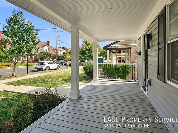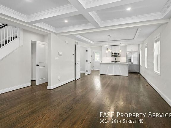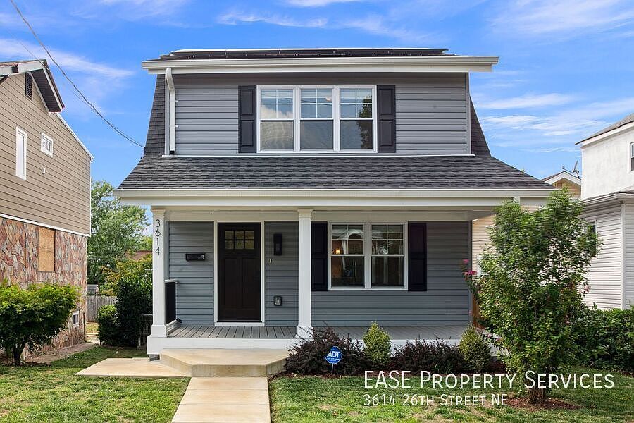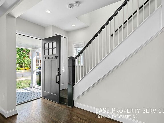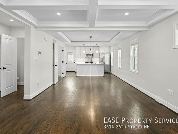 Stunning, fully renovated home in the heart of Woodridge! Welcome to 3614 26th Street NE. Sitting on a quiet, residential block, this 4 bedroom, 3.5 bathroom home spans nearly 2,000 square feet on a huge 3,700+ square foot lot. It features a great layout, bright & modern kitchen, fenced-in backyard + patio, off-street parking with a roll-up garage plus solar panels for low electric bills! Home Features: Completely renovated in 2022. Everything is just two years old Inviting front porch overlooking quiet 26th Street Solar panels keep your electric bill low Beautiful dark hardwood floors throughout The main level gets tons of natural light and has a stunning coffered ceiling Plenty of space for a large dining table Luxury kitchen with quartz waterfall island & countertops and stainless steel appliances Bonus den/office room and a powder room on the main level Large patio off of kitchen plus a fenced-in yard, perfect for entertaining your guests! Upstairs leads to the massive primary suite with ensuite bathroom and a walk-in closet Second and third bedrooms on upper level with an additional full bathroom in the hallway Fully finished lower level with an additional full bathroom, living space, and fourth bedroom Washer/Dryer in unit Parking: Off-street parking with roll-up garage door behind home for two cars. Utilities: Tenant is responsible for all utilities (gas, water and electric). Lease Terms: Available immediately. Minimum 12 month lease term. Application fee is $35 and includes a credit check. Security deposit equal to one month's rent due upon lease signing. Pets considered on a case-by-case basis pending approval by Owner. Location: Woodridge is a quiet, residential neighborhood bordering the DC/Maryland line. Situated close to multiple parks, great location for commuters with easy access to Rhode Island Ave/Rt. 1, and walking distance to restaurants of Brookland, Zeke's coffee shop, and nearby grocery stores on both the DC and MD side. Just over a mile to the Brookland Metro Station.
