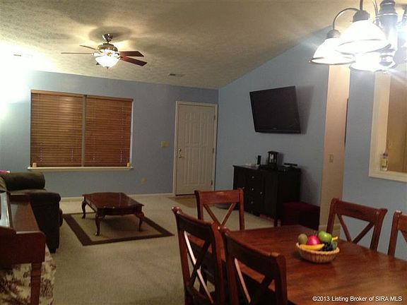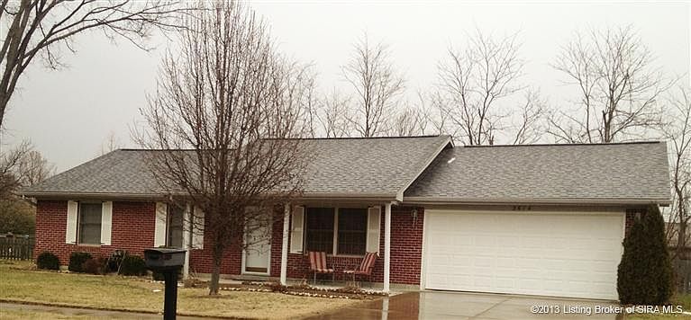 Super Price for a-move in ready-super house. 3BR, 2BA ranch with covered FRONT PORCH and a Pergola on an oversized PATIO. Master suite with master bath. Open floorplan great for entertaining. Vaulted great room and dining room. Lovely kitchen with appliances and beautiful back splash. A-trium doors with built in blinds leading to Great size fenced in back yard. laundry/Mud room has been converted into an office, with door leading to outside, with laundry area in extended garage. Can be used either way, seller will convert back if desired. Such a nice family home! Great size Fenced in back Yard. Convenient location to everything yet, not too close.\n\nInformation Deemed Reliable But Not Guaranteed. Information provided by the Southern Indiana REALTORS® Association, Inc. © 2010 SIRA Multiple Listing Service. All rights reserved. Brokered And Advertised By: RE/MAX Advantage Listing Agent: Fancy Fulton