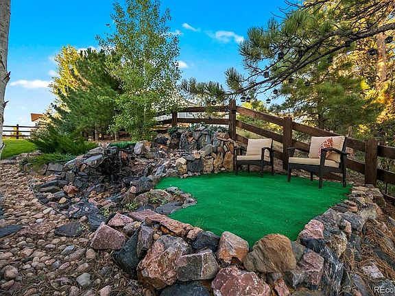 Extraordinary Plum Creek executive home on a quiet cul-de-sac backing to a green belt with views of the Front Range and open space. Outstanding resort-like backyard with a flagstone patio with a covered pergola and features a custom bar, a water feature and flower gardens. Live out your dream in this lovingly maintained home featuring a dramatic two story great room with a wall of windows for natural lighting and a gas fireplace that flows into the gourmet chef's kitchen with slab granite, a stone backslash, a center island, stainless steel appliances, double wall ovens, a butlers pantry plus a breakfast nook that walks out to the deck. A formal dining room with tiered ceiling, an office with French doors and the laundry room complete the main level. You'll love the master retreat featuring three closets, a tiered ceiling and a gorgeous 5 piece spa with his and hers vanities. The secondary bedrooms share one full bath while your guest will enjoy their own private en-suite bedroom. The unfinished lower level can be easily finished to meet your family's needs. Great location near Plum Creek Golf Course, parks, trails and charming downtown Castle Rock for shopping, dining and entertainment.