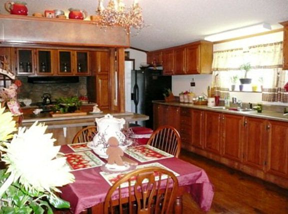 Super Spacious manufactured on over 5 level to gently rolling acres. Inside features beautiful custom wood floors, accents and trim. Center of the home is the epitome of open floor plan with the perfect set up for entertaining friends and family. Kitchen is equipped with lots of cabinet space and breakfast dining. Bedrooms are XL and master suite bath has all the extra features- garden tub and shower. Wood burning fireplace is an added benefit in the cozy den just off the master suite. This is a super nice home with convenience to the city but the charm of the country. Permanent foundation, fenced yard, (2) 10x20 outbuildings. Also plenty of room to add a 3rd bedroom.