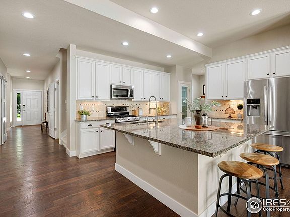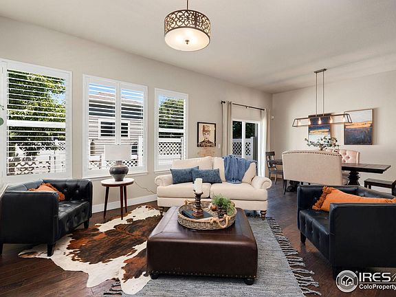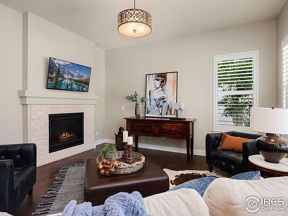 **Multiple Offers Received** Please have any offers in by Saturday at 3:00 p.m. Low maintenance luxury patio home with views from the cozy front porch. Main level featuring gorgeous kitchen w/ oversized island, lovely dining area and living room with gas fireplace. Enjoy the primary bedroom with 5-piece bath and custom closet, 2nd bedroom, bath, laundry room and office - all on the main level! Upstairs you'll find 2 additional bedrooms and a full bathroom. Finished basement with rec room, built in bar, workout room and two storage spaces. Upgraded doors and trim throughout. Just lock and leave, the HOA takes care of landscaping and snow removal. Enjoy the array of neighborhood amenities, a community pool, parks, playground, splash pad, Observatory, walking trails and so much more! Steps away from Fossil Ridge High School and walking distance to Twin Silo park. Close to I-25, restaurants, and shopping. You won't want to miss this!