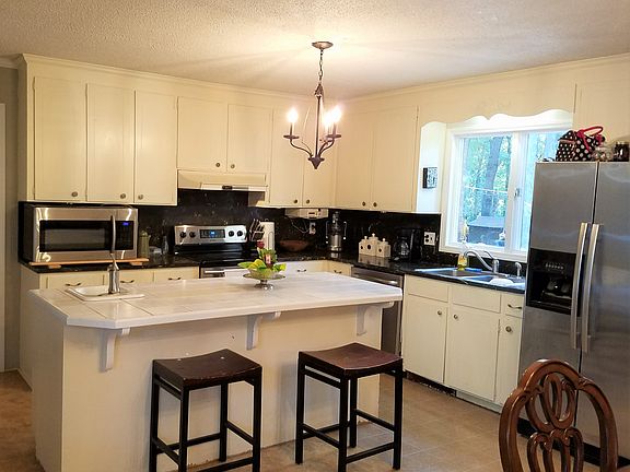 Country living on over 3 wooded acres! Updated 3 bedroom home plus bonus space and 2 car garage with basement workshop. Fenced areas and shelter on the property to accommodate farm animals, chickens and goats. Home has been completely and tastefully updated. Loads of natural light with beautiful floor to ceiling windows. Kitchen has all new soft close, light colored cabinets, stainless steel apron sink, and large breakfast island. Bonus room could serve as 4th bedroom, bonus space or in law suite with it own full bath. Master has beautiful view of wooded yard and updated master bath with garden tub and walk in closet. The garage has an unfinished workshop space and lots of storage. Screened in porch and new above ground pool make this home a peaceful retreat not far from the highways, shopping, dining and entertainment.