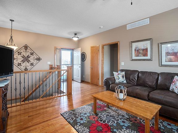 Upon entering this Open Style, lovely home, you will notice the Beautiful Natural Hardwood Flooring throughout the living, dining and kitchen area. The Living and Dining area share a see-through gas fireplace started with a quick click for instant warming flames. This wrap kitchen offers Solid Wood Front Cabinets with under and over cabinet counter lighting and hardwood flooring. The main level laundry offers a storage cabinet and a reach in pantry. The dining area plus the master suite offers a quick exit to the partially covered EAST facing decking. The Master Suite is spacious, large enough for a king sized bed, plus night stands and dressers. The Master Bath features a jacuzzi tub, a walk in closet, dual vanity, and individual shower. This lower walk out basement offers a spacious Family and Recreation Area with built in shelving, a game room (could be 5th bedroom), a spacious wet bar, the 4th Bedroom offers view out windows, the 3rd full bathroom, and a storage area. This Nicely landscaped yard is maintained with a sprinkler system and an irrigation well.. Also, this home offers a 3 car attached garage, special taxes almost paid with a balance of only $186.00, and is located close to highways, restaurants, and shopping. Hurry to make this home yours.
