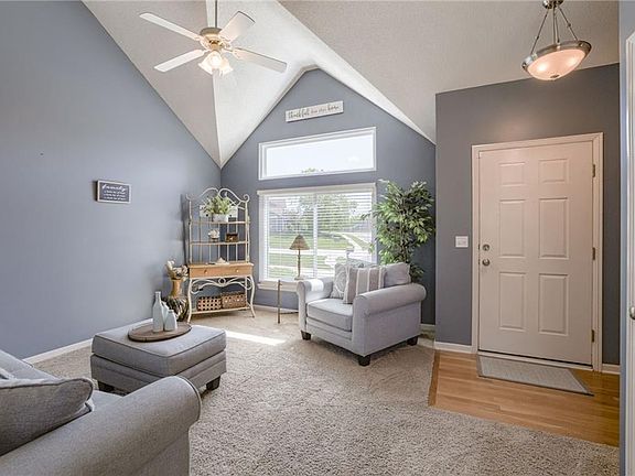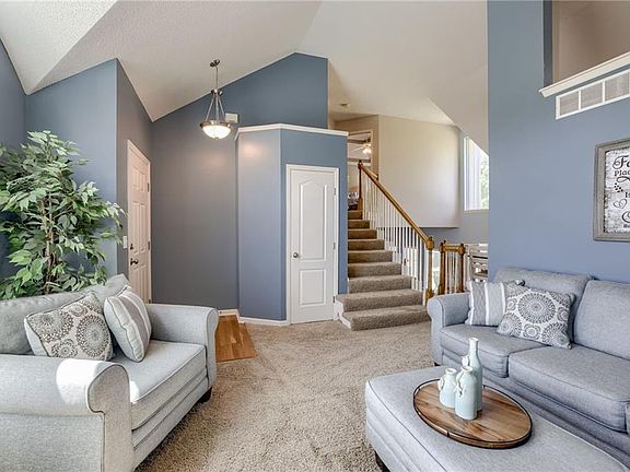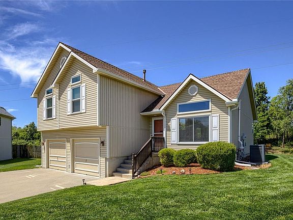 Natural light fills this home! Located in a quiet culdesac, this home features a large, private lot of 1/2 acres. Beautiful vaulted ceilings and large living spaces are fantastic and allow easy conversation between rooms. Large primary bedroom with walk-in closet and bath with double vanity, whirlpool tub. All bedrooms on one level but with separation from primary bedroom. Bedroom level laundry. Relax and enjoy fall evenings on the upper deck or lower patio overlooking the private back yard. New triple-pane windows on front of house. The location couldn't be better - near ballfields, walking trails, and premier shopping and entertainment. Easy access to KCI.