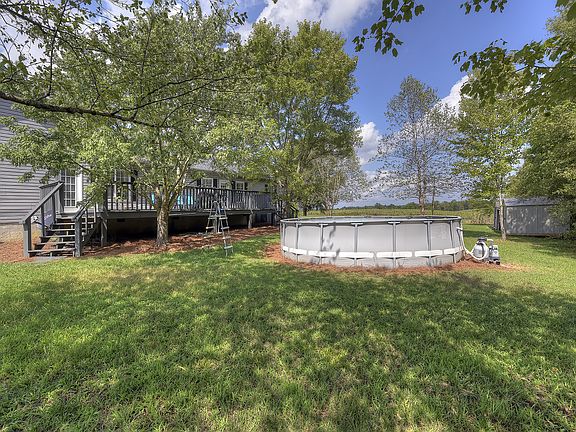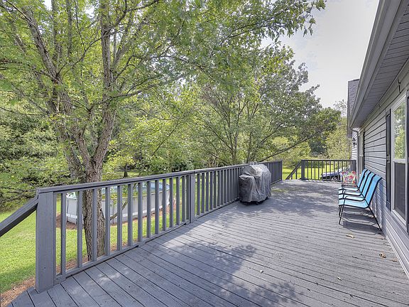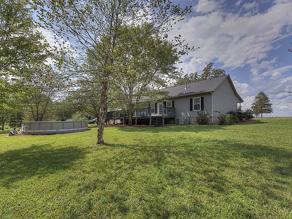 Country sunsets are beautiful from a rocking chair on the wide front porch of this fabulous home! Open flow and split bedroom floorplan. Vaulted ceilings in the great room. Master suite features over-sized shower, garden tub & walk-in closet. Above ground pool. Newer roof and water heater. New gas range/oven and dishwasher in 2014. New pool pump, well pump, and garage door/opener in 2015. The 5- acre lot is half wooded/half open (back half wooded). Large wood deck! Home warranty included.
