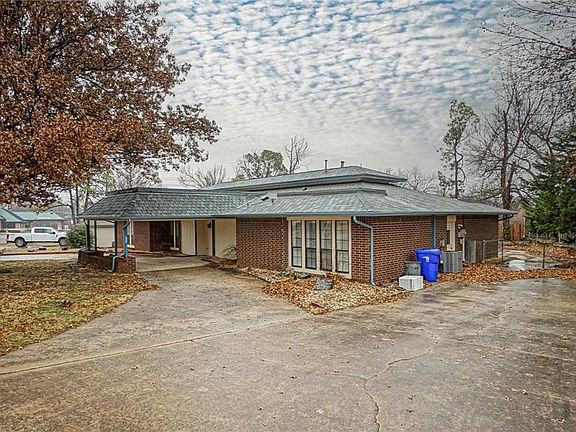 The circle drive and porte-cochère welcome you home to River Oaks! Gorgeous wood floors in the French/modern, stainless/granite kitchen, where cabinets reach the ceiling. Pull-outs in the cabinets expand the ease of use and storage options. The adorable subway tile backsplash and breakfast bar make this space the heart of the home. The breakfast area could double as open office or reading nook. Sun-filled living room is spacious, cathedral ceilings and large picture window offer a feeling of space. Enjoy the wall-to-wall bench along the cozy fireplace. There are French doors onto patio, relax under the pergola and peaceful backyard. There is floor-to-ceiling storage, 1/2 bath between laundry room and 4th bedroom. Primary bedroom is large, has double closets and walk-in closet in the updated bathroom. Easy access, step-in shower. Plantation shutters in all bedrooms. Mature tree shades the front. Carpets freshly cleaned. This is a great community, easy commute to University of Oklahoma.