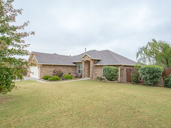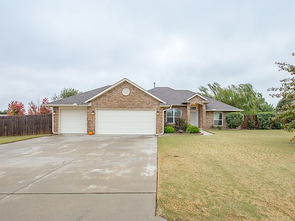 Come see this beautiful home on nearly half an acre in Remington Place Estates. Enjoy a semi-open floor plan with high ceilings, a fireplace, and a formal dining room that can be used as an office space. The kitchen has ample counter space and is equipped with breakfast bar and pantry. The spacious master bedroom has an en-suite with double vanity, jetted tub, shower, and walk in closet. The Large, 3 car garage is equipped with an in-ground storm shelter so you can rest easy during storm season. Enjoy a huge backyard with covered patio, raised garden area, 16 x 16 shop/storage building, and willow trees. With easy access to Highway 9, you can be in Norman, Newcastle, or to I-35 quickly. Home is in the Newcastle school district. NEW roof and water heater.