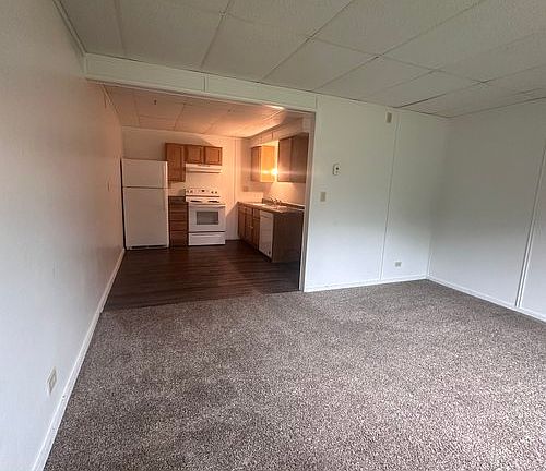 This cozy 2 bedroom, 1 bathroom upper level apartment is available for rent NOW! Garage, and off-street parking. Coin-op laundry available in basement. Carpeting throughout. Lots of natural light. Located in a quiet neighborhood. Tenant only pays electric. Cats allowed for an additional fee. Household income must be 3X the monthly rent. No evictions. Good rental and employment history. Atleast 600 or higher credit score (Per Credit Karma).