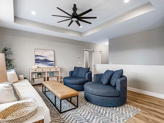 Discover this stunning new home in the desirable Old Sorrel Ranch community. The price is right for this almost-new 3-bedroom home on a large lot, making the unfinished basement an awesome bonus! Step into a beautiful kitchen featuring an island, granite countertops, and sleek slate appliances, including a refrigerator. This home boasts elegant custom touches such as coffered and tray ceilings. The master bathroom is a true oasis, complete with barn doors, a freestanding tub, and a spacious shower. Enjoy the privacy of a block wall surrounding the expansive .3-acre yard, beautifully landscaped with new rock and grass. Relax and take in the gorgeous sunset views over the nearby farmland and west mountains. With ample RV parking and plenty of additional space for all your needs... this property is ideal for outdoor enthusiasts and gatherings alike. The unfinished basement offers fabulous potential for customization and extra living space.