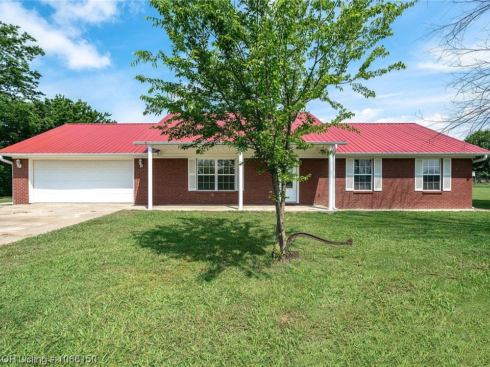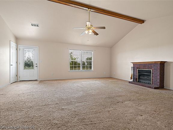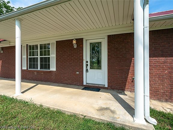 Nice brick home on a quiet dead end road on the outskirts of Poteau, OK. Three bedroom, two bath sitting on 1.29 acres. Kitchen has stained cabinets and includes all appliances. There is a large pantry at the end of the kitchen. Glass doors lead from the eating area to the covered patio & fenced back yard. Living room is spacious and cathedral ceilings & propane gas log fireplace. Primary bedroom has split bath with fiberglass shower & a walk-in closet. Two car garage with laundry connections (washer conveys) and a door to the back yard. There is plenty of space for a large garden and swimming pool. There is an additional 5.63 acres adjoining in a separate listing #1066152