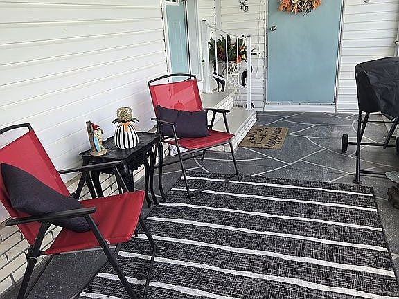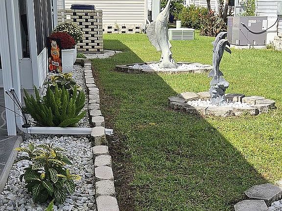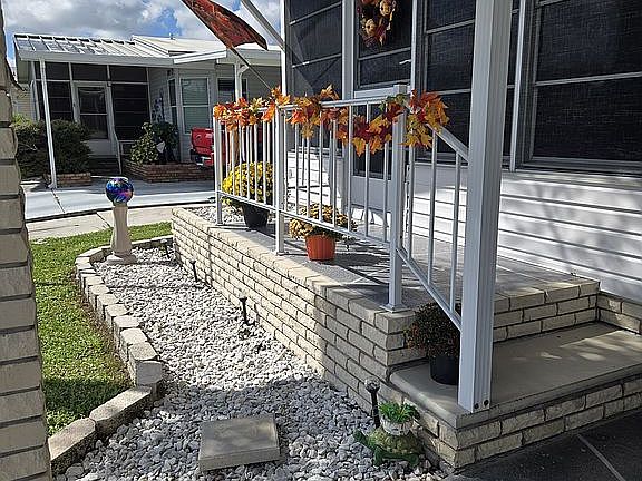 This beautiful home comes furnished, with exception of a few kitchen items. Survived Hurricane Milton very well!! Welcome to your paradise. This home is a two bedroom, two bath gorgeous, newly renovated showcase home can be yours. It's a 1996 Palm Harbor, manufactured home. With an extra large dream shed attached. This home has a new roof, new air conditioner, and all new piping replaced. New flooring installed also. Completion was done in November 2023. This gorgeous home has been freshly painted throughout. The quartz countertops has plenty of room that meets your cutlery needs. Also in the kitchen, has new backsplash that accents the beautiful quartz countertops. New stainless steel Whirlpool appliances. New microwave above the stove. Adjacent from the kitchen, you will discover a dining room that has a bay window that captivates the front of this beautiful home. The spacious living room offers plenty of room for entertaining, or just relaxing and unwinding from your day. The beautiful furniture is only three years old, with exception of the white accent chair being new. The master bedroom features a 12 foot walk in closet. The master bedroom furniture is brand new. The master bedroom also has off white plush carpet. The guest bedroom has plush carpet, also with beautiful white wicker furniture. The washer and dryer is inside and also new. All new blinds throughout the home. There are new ceiling fans in the living room and one in the master bedroom. New light over the dining room table. The stunting home features two cozy lanis. The side lane is a screened in area. Perfect setting for sipping a morning cup of coffee or an evening cocktail. The interior lanai is great for reading a book, or having lunch on table setting area. Outside the property offers a double side by side carport. All shutters have freshly painted.. This beautiful home is located in beautiful Veranda Springs gated 55+ community. Veranda springs has the lowest lot rent in this area. Mine is now $ 641, The beautiful community features a heated pool, hot tub, and lots of activities in the community center. There are also an exercise room, pool table, library, and line dancing and so much more. Lawn maintenance, and trash are included in your monthly rent. There is a pickleball /tennis court available. Don't miss out on this home., where everything is done for you. Call and schedule your private showing. Call 231 670- 6501