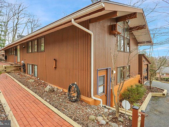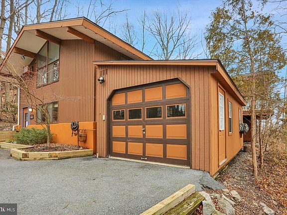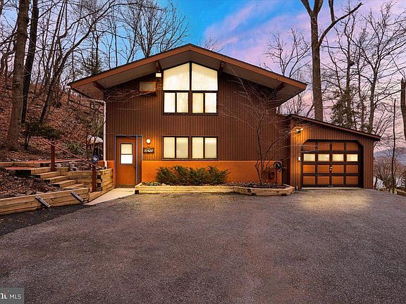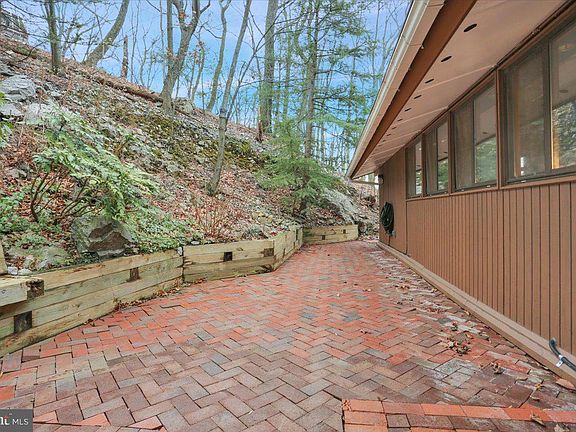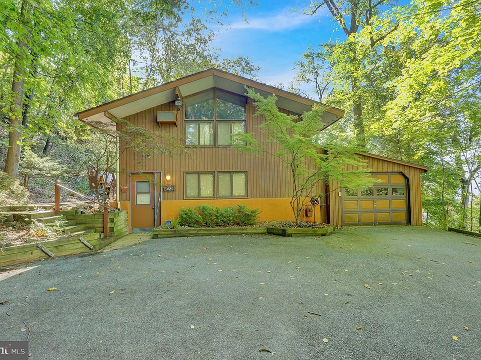Nestled away in Exeter township is where you'll find this unique mid-century modern split level with floor to ceiling windows for spectacular views from every angle. You'll feel like you're in a tree house with an abundance of privacy, yet quick access to major roads. The front door opens to a foyer entrance which opens to the Great Room with an impressive floor to ceiling double sided grey stone fireplace which flanks the living room and dining room, giving this space a real wow factor. Equally impressive are the vaulted ceilings and wood beams and floor to ceiling windows in the great room and dining rooms, providing an abundance of natural light. Sliders lead out to a massive covered deck, the perfect place for entertaining or enjoying your morning coffee. A kitchen with separate breakfast nook is off the dining room. Back to the foyer and one half level up is the master bedroom and master bath, 2 bedrooms and another full hall bath. The walk-out lower level offers 2 more bedrooms, a 3rd full bath, laundry room, workshop, and access to garage. This property has 2 sheds. This is truly a one-of-a-kind property that will go fast, so schedule your showing soon!