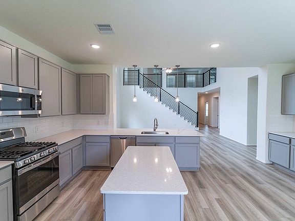 Our grandest home in the Cobalt Series, the Trinity floor plan boasts an impressive two-story floor plan that is sure to suit most any lifestyle.. Upon entry, you are first greeted by the private study room that also has the option of transforming into a fifth bedroom if you would rather have the space for more guests to visit. Next, you will find the access to your convenient downstairs powder room, a walk-in utility room, as well as the entry to your two-car garage. Needing more storage for extra tools or supplies? Opt to swap your standard two-car garage for a sizable two-and-a-half-car garage! Down the hall, you will reach the heart of your home - the massive, two-story family room with soaring ceilings and consisting of plenty of natural light. Opening up to the family room is the convenient adjoined kitchen and breakfast area with access to your optional extended covered patio. Your elegant kitchen comes fully equipped with industry-leading appliances, sleek granite countertops with a ceramic tile backsplash, designer light fixtures, and the option to put in an island and extra cabinets if you desire more counterspace. With features like these, you will want to cook every meal! Completing the first floor is your secluded Master suite with your master bathroom containing the cultured marble countertops with option of dual vanities, a shower/bathtub enclosure, and a huge walk- in closet. Upgrade your bathroom space to include a master luxury bath with stand alone shower o