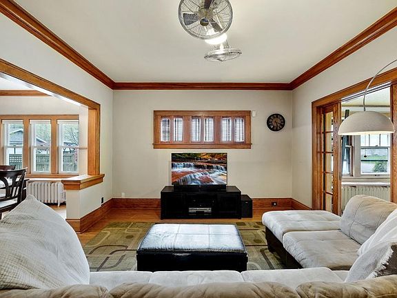 Spacious bungalow full of style, charm, and architectural details. Fantastic Nokomis location steps from great restaurants and shops, light rail, Lake Nokomis and Minnehaha Falls parks. Welcoming front porch. Great light in the bonus sunroom. Gorgeous detailed woodwork, hardwood floors, and 9ft ceilings. Kitchen with lots of cabinets, stainless appliances, and new flooring. The bedrooms have hardwood floors and good-sized closets. Period style in the updated main floor bath. Neutral white tile floors and walls with an in-room storage closet. Great opportunity to finish the upper level. The large space offers potential as another bedroom or additional living area. The lower level is clean and bright with plenty of space. Well updated systems in this home too: High efficiency boiler & new water heater. Nice patio in the back yard for summer BBQs. Two-car garage and a private driveway. You'll love living so close to everything that makes this Nokomis neighborhood so great!