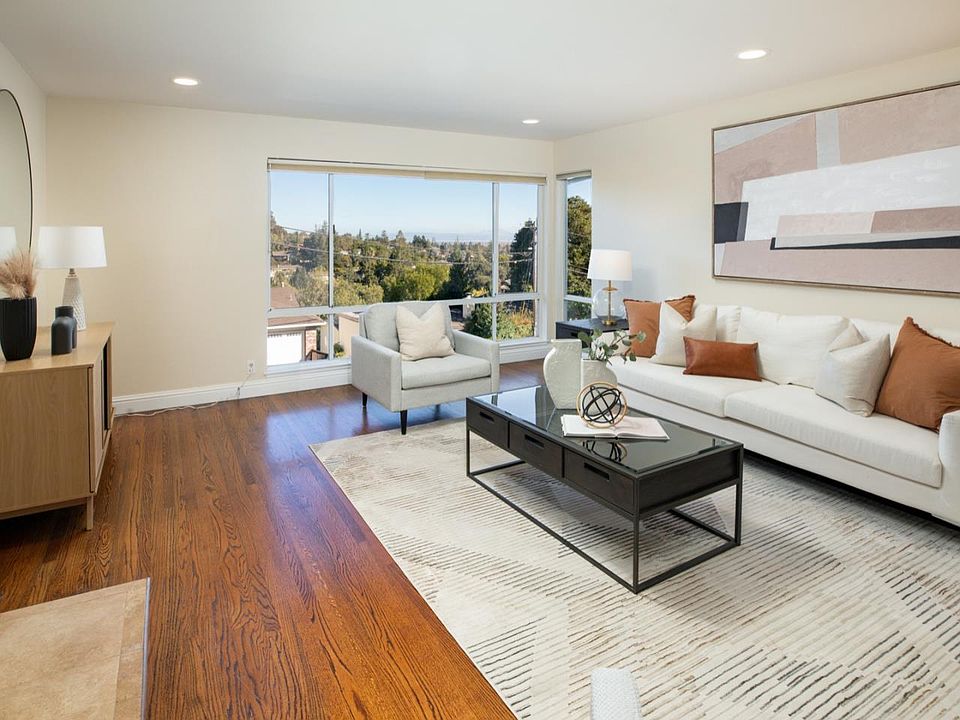 Discover this stunning 3-bedroom, 2-bath home nestled in the highly sought-after Farm Hills neighborhood of Redwood City. As you enter, you'll be greeted by the warmth of original hardwood floors that flow throughout most of the living spaces. The large living room features an oversized picture window, offering spectacular views of San Francisco Bay and Mount Diablo. The updated kitchen is a chefs dream, showcasing granite countertops, stainless steel appliancesincluding a gas rangeand an abundance of storage for all your culinary needs. The spacious oversized master retreat provides a perfect getaway after a long day. Freshly painted throughout, this home feels modern and inviting. Step outside to your private backyard oasis, complete with a flagstone paver patio and a beautifully terraced garden, ideal for entertaining or quiet relaxation. The north-facing orientation ensures ample natural light and a large driveway offers extra parking for guests. Enjoy easy access to highways 280 and 101, and take advantage of being just a 5-minute drive from charming Downtown Redwood City. This delightful home is the perfect blend of comfort, style, and conveniencemake it yours today!