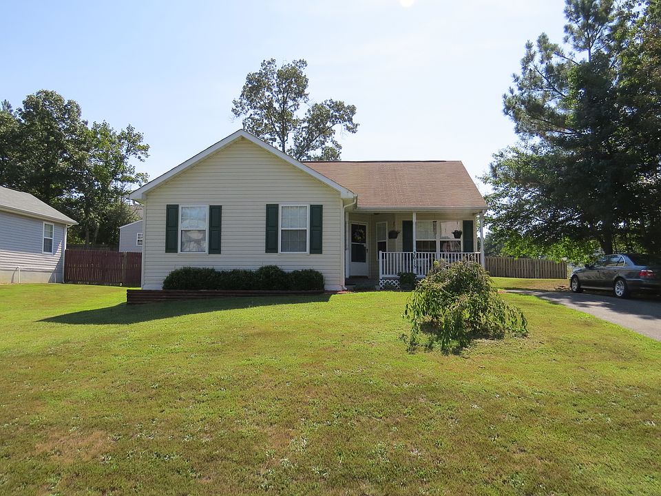 Charming rambler, with covered front porch. Walk into an open floor plan with vaulted ceilings and hardwood floors. Kitchen boasts S/S appliances and granite counter tops. Master bedroom has W/I closet and full bath. Large backyard and a deck for entertaining on. Climate controlled storage under house!