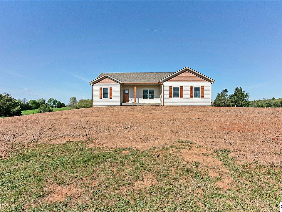 Nestled on nearly two sprawling acres in the serene countryside of Sonora, Kentucky, this brand-new ranch-style home offers the perfect blend of modern comfort and peaceful living, with convenient access to I-65. This inviting residence boasts a spacious, open floor plan, accentuated by soaring vaulted ceilings that create an airy and bright atmosphere. The heart of the home is a large, contemporary kitchen, equipped with sleek stainless steel appliances, ideal for both everyday meals and entertaining guests. The home features three generously sized bedrooms and two beautifully appointed bathrooms. The primary bedroom serves as a tranquil retreat, complete with a substantial walk-in closet to accommodate your wardrobe. The en-suite bathroom elevates the experience with a luxurious, large tiled walk-in shower and elegant double sink vanities, providing ample space and style. A full walkout basement extends the living space, offering endless possibilities for customization – a recreation room, home office, extra bedroom or additional storage. This versatile area seamlessly connects to the expansive outdoor space, perfect for enjoying the natural beauty of the surrounding land. The almost two-acre lot provides ample room for outdoor activities, gardening, or simply relaxing and enjoying the quiet of rural Kentucky. The proximity to I-65 ensures that while you enjoy the tranquility of country living, you're never far from essential amenities and travel routes.