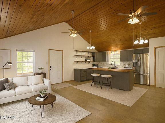 Don't miss this storybook country cottage that blends vintage charm with thoughtful updates. Step into the spacious great room, where vaulted ceilings and brand-new hardwood floors create a warm and welcoming atmosphere. The kitchen is a true highlight, featuring new cabinetry, sleek countertops, stainless steel appliances, and a gorgeous oversized butcher block island — perfect for gathering and entertaining. A cozy breakfast nook offers the ideal spot to enjoy meals with family or friends. This home offers 3 bedrooms and 1.5 baths, plus a versatile loft upstairs that can serve as a home office, creative studio, or guest retreat. Outdoor living shines here with a classic wrap-around porch, a peaceful backyard, and plenty of room to relax or play. A detached 2-car garage and level driveway provide added convenience. From its character-filled details to its modern updates, this home truly has it all — and it's ready for its next chapter.