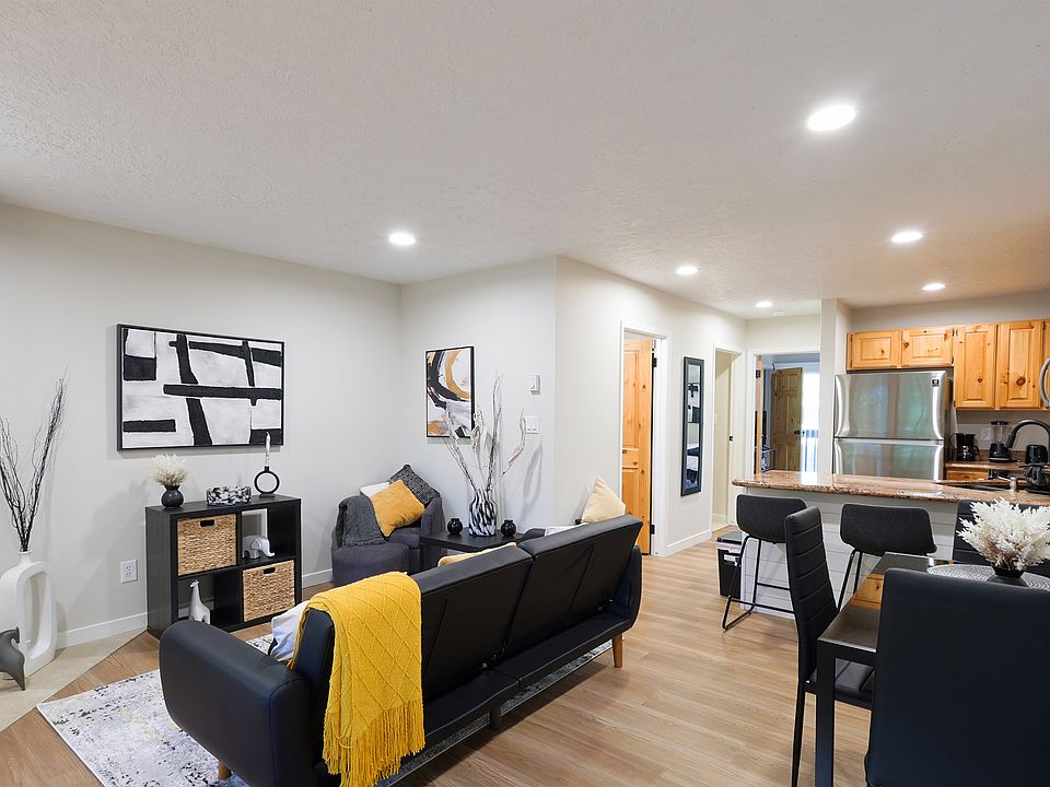 Maximize your lifestyle and your income with this spectacular, fully updated 2-bedroom, 2-bathroom condo at Wolf Lodge in Eden, Utah. This is the ultimate turnkey investment or second home, as it is approved for short-term rentals and sits adjacent to the Wolf Creek Golf Course, offering breathtaking mountain and valley views. The 1,152 sq ft unit has been completely refreshed, new flooring, a cozy fireplace, and a fully equipped kitchen. HOA provides resort-style amenities that attract renters, including a heated community pool, hot tub/spa, sauna, gym, and tennis courts, while covering essential services like snow removal and all utilities (water, sewer, trash). Its unparalleled location is an outdoor paradise; the Powder Mountain shuttle picks up at the corner. Powder Mountain is closest (10-minute drive) on powder days, quick access to Snowbasin (20-minute drive), and summer watersports on Pineview Reservoir (10-minute drive). Don't miss this opportunity to acquire a flexible, amenity-rich property in a prime recreational setting.
