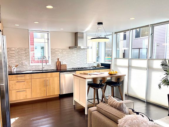 Welcome to the heart of Fremont. Steps to all the hot spots in Fremont. Walkable to Tableau/Salesforce, Adobe, Google & Burke-Gilman! Enjoy a lifestyle of urban convenience w/tons of natural light throughout. Enter greeted by polished concrete floors & rare 1-car garage. Incredibly efficient radiant in-floor heat throughout. Main level boasts an open kitchen with island, living & dining w/metal feature stairwell. High-end Fleetwood doors open like butter to both decks over the back yard w/plenty of room to relax & entertain. Bonus- powder on main level! Top floor includes a W/D along w/2beds & 2baths, one is ensuite.
