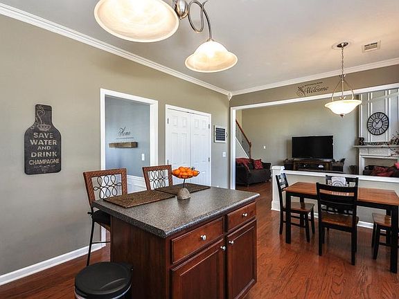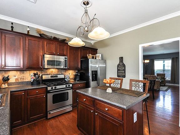 Fantastic home with largest lot, on cul-de-sac very close to 28 acre recreation area & clubhouse! Exterior recently painted with "Todays" colors and overlooking water. The main floor has hardwood floors, wainscoting, beautiful blinds/curtains & iron pickets. Open kitchen with stained cabinets, large island & great fridge that stays. Huge upgraded Master walk-in closet next to a great bath with separate tub & shower. Washer/dryer, playset, doghouse & shed remains.