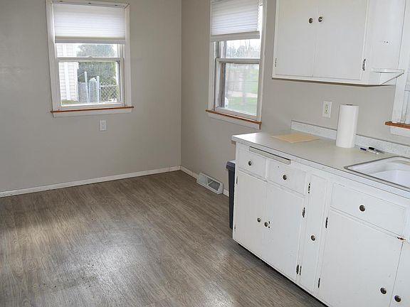 Great yard backing up to parkway that extends south to 19th St. -- so no neighbors behind! Vinyl siding; hardwood floors in LR, hall, and both BRs; mostly-fenced yard; paved driveway plus huge expanse of concrete for additional parking. Metal shed for yard tools, bikes, etc. Full wide-open basement for future finishing. Furnace & water heater, 2019; kitchen floor, '20; vinyl siding & roof, about 2004/05. Needs updating and so not suitable for FHA/VA financing; sellers will not make or pay for any repairs.