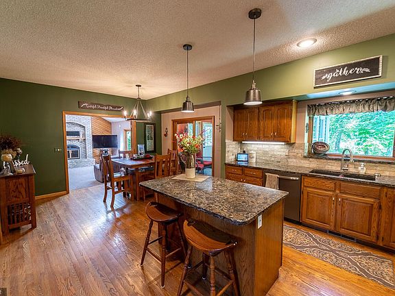 Beautiful well maintained home offering privacy and quiet living space overlooking the Mississippi River. Home features 5BR/3BA, formal and family dining, elegant custom kitchen, hardwood floors, main floor office, covered front porch, 3 season porch & 3 stall attached garage. Basement is partially finished (family/game room) and has a handy access directly up into the garage. Master suite located on the upper level features 2 walk-in closets. Beautiful lot with majestic Red Pines. The deck and fire pit are located on the riverside and make for great entertaining spaces. Realtor notes: adjacent to a city owned forest & close to walking/biking trails. Notable feature: The cozy wood burning fireplace in the family room loads from inside of the garage - no mess!
