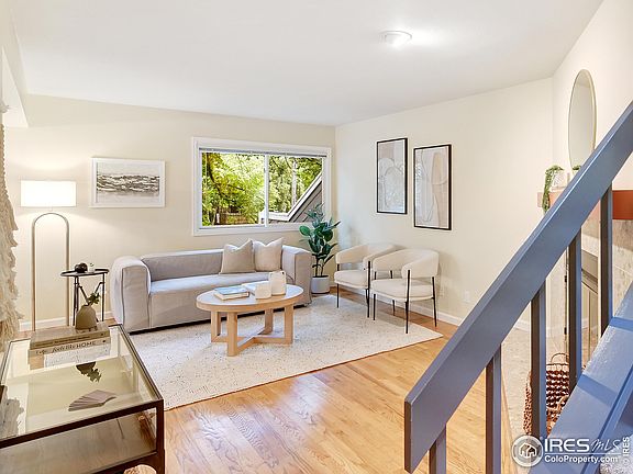 Welcome home to easy living and great value in this spacious 4BD/4BA townhome with an open floor plan, lots of light and a lovely private fenced patio and yard. Main level has a cozy, yet open feel with good flow from kitchen to dining and living areas. New roof, skylights & gutter-guards, & new exterior paint in 2021, new fence and landscaping in 2022. Attached one car garage, plus reserved parking space. Super convenient North Boulder location and adjacent to bike paths, plus great HOA common amenities too, including pools, tennis courts and parks.