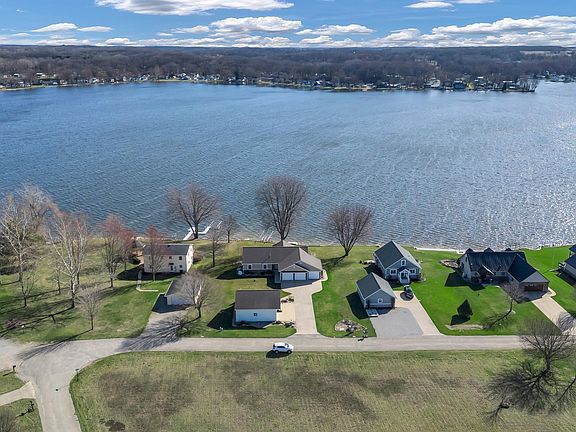 Big Turkey Lake Beauty! Amazing curb appeal with a breathtaking sunrise view. 100 feet of sandy beach lake frontage, just under half an acre lot. Manicured lawn and landscaping. Nice flat yard for kids to run. 4 bedrooms, 3 full baths, and attached 3 car garage featuring over 2700 square feet of finished year-round living area. Live worry free with the back-up Generac generator (10 year warranty) and 50 year roof shingles. Island kitchen with solid surface countertops and ceramic tile backsplash, reverse osmosis system to the sink. Luxury vinyl plank flooring throughout all of the living areas, carpet in the bedrooms. En suite master bedroom has ceramic tile shower, walk-in closet, and lake view. Beautiful sun room under heat/air with floor to ceiling windows, sliding doors out to the composite deck with vinyl rails and solid glass paneling. Walk-out basement has a rec room, kitchen, 4th bedroom, full bathroom, additional living area leading out to the brick paver porch and hot tub - it stays, along with all other major appliances. Loads of storage pantry cabinets and shelf space in the unfinished area of the basement. . Need lake toy storage? No sweat... literally - 30 x 30 Detached garage has heat and central air! Completely drywalled, cabinets and countertop, insulated 9ft overhead doors and 100 amp electrical service. Tons of concrete parking space. 60 feet of 4 foot pier plus 12' x 10' section at the end will remain Don't overlook this captivating property! Call your favorite local Realtor and schedule a private tour today.
