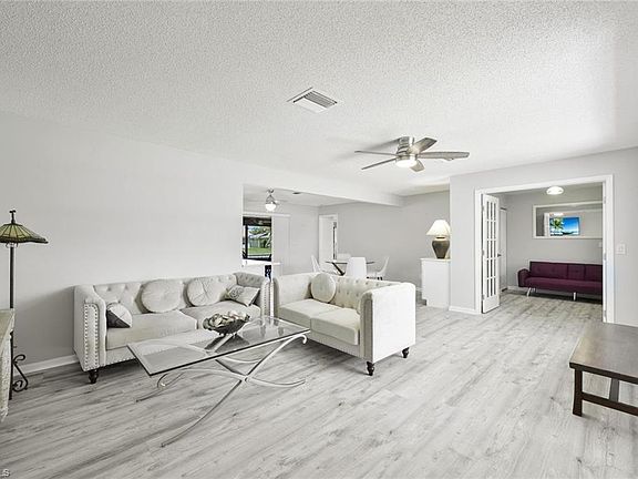 DID NOT FLOOD, DIRECT AND SAILBOAT ACCESS, NO BRIDGES! This move-in ready home is located in the highly sought after Savona neighborhood at the end of a quiet cul-de-sac on an oversized lot! The seller is moving due to a job transfer. This home has so much to offer and has many improvements since the buyer moved in. Few minutes from the river and the Gulf with beautiful views overlooking the intersecting canal. This 3/2 ranch-style home with an extended 2 car garage is just under 1600 sq ft. The 3rd bedroom can be used as den/office/nursery. New & spacious kitchen with quartz countertops, shaker cabinets, large pantry, whole house water softener with reverse osmosis module for drinking water and ice. All new LG stainless steel appliances. Large lanai, & plenty of room to build your new pool. COMPLETELY REMODELED in 2021, New tile roof 2017 recently cleaned and sealed, new AC June of 2023, new electric panel, updated bathrooms, LVP floors throughout. Fresh paint interior & exterior, lawn sprinklers and exterior lighting. Concrete dock for your boating enjoyment. ALL ASSESSMENTS IN AND PAID. Near downtown with amazing restaurants, live music, bars, dancing, golf, shopping, beaches with easy access to Fort Meyers.