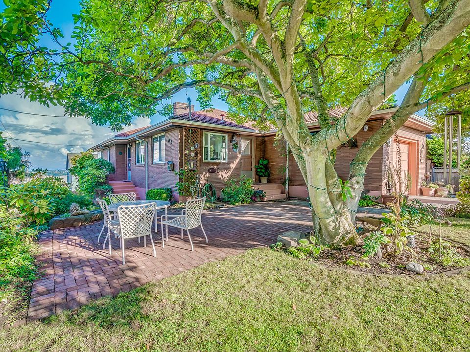 Idyllic mid century view home nestled on a gorgeous landscaped lot! Solid level entry two bedroom , one bath, roman brick home. Spacious living room with huge windows capturing City,Sound and Mountain views & wood burning fireplace. Formal dining room opens to a well equipped kitchen with stainless steel french door fridge, new stove/oven & dishwasher. Lovely master bedroom with unobstructed Mt Rainier views. Convenient washer / dryer & attached 1 car garage. Located in the coveted Belvidere neighborhood, this home is surrounded by persimmon,apple, fig and Japanese pear trees. There are beautiful flower & vegetable gardens and a stone patio set under the shade of a dreamy flowering magnolia tree. This home is truly an in city retreat ! LynnMac Commercial Real Estate One year lease, dogs & cats allowed case by case, No smoking, Tenant pays all utilities