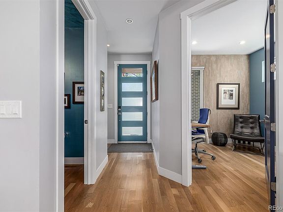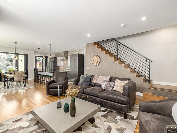 Gorgeous light filled, south facing 1/2 duplex in LoHi. Incredible third level with AWESOME city views! Beautiful finishes throughout with numerous upgrades and attention to detail. Main floor great room with linear gas fireplace, dining area with sliding French doors to the back patio. Chef's eat-in kitchen with quartz countertops and a center island with waterfall countertops, decorative tile backsplash and under cabinet lighting. All kitchen appliances are included: Cafe 4 door refrigerator, Bertazzoni 5 burner gas range and Bertazzoni dishwasher. Solid hardwood floors throughout including the stair tread and closets. Custom wall paint and wall textures, and a main floor office with thoughtful built-ins. Luxurious primary suite with sliding doors to a Juliet balcony and a primary 4 piece bathroom with a large walk-in shower with bench, dual showerheads and hand held sprayer, and decorative tile. The primary bedroom closet was the 3rd bedroom turned into an expansive, dream closet with center island and numerous built-ins and organizers. Could easily be turned back into a 3rd bedroom. Guest bedroom and full guest bath are also located on the second level along with the laundry closet with full size washer and new dryer. Third level with family room with wall mounted TV, powder room, wet bar with beverage refrigerator, new Rheem split, and roof top deck with incredible city views! The main level patio has designer wood look tile, retractable Sun Setter electric awning, firepit, lawn area and 6ft privacy fence. 2 car detached garage is equipped with a pull down ladder to additional storage, built-in cabinets, car vacuum, pull down bike rack and 2 EV charging outlets. MOVE IN READY!
