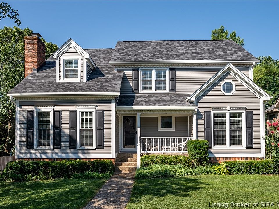 Check out this curb appeal! Complete exterior renovation with new roof, gutters, siding, trim, windows, and driveway! From the street it looks like a brand new house! Incredibly convenient Sunset Manor close to IUS, I-265 and every major convenience. Over 2400 sq. ft above grade plus room to expand in the unfinished basement. Oversized 2-car garage with additional workshop space. All appliances remain and furnishings negotiable. Soak up the views of your completely tree lined back yard from your deck, kitchen or cozy sunroom. All 3 bedrooms are on the second floor. Primary bedroom has a vaulted ceiling, large ensuite bath with jetted tub and separate shower and walk-in closet.