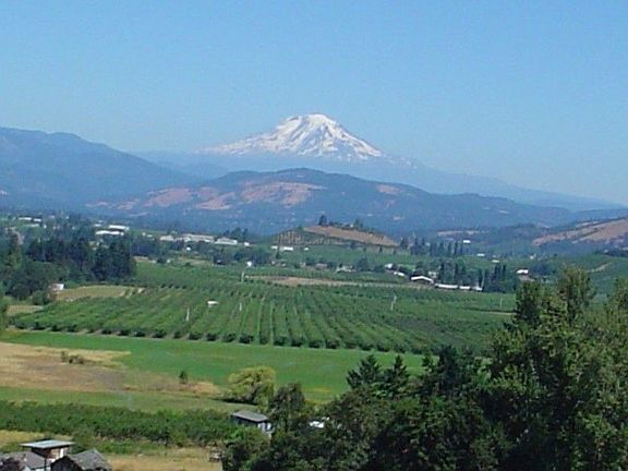 Beautiful Custom Home on the Eastside features Mt. Adams and Hood River Valley view. Windows & decking guarantee a view from the living, dining, kitchen & master on the main and 3 bedrooms in the basement. Features: oak hardwood floors, hickory cabinets, granite countertop, skylights, floor to ceiling rock fireplace in the living room, cathedral ceiling, built in bookcases-just to name a few. 6.5 acres in cherry & pear production.
