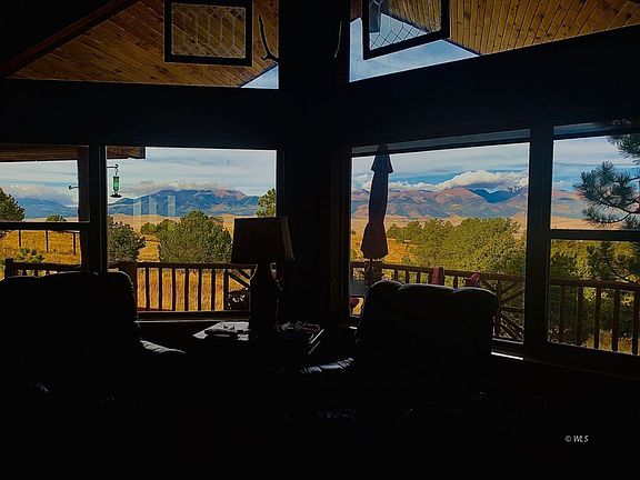 ?This property is a MUST SEE!! The quintessential high mountain home on 54 acres of usable land with epic 360 views!! Perfect for hiking, biking, and horseback riding. This home is the idyllic mix of elegance and comfort, ideal for retreating and entertaining. The entryway opens to the large great room with grand cathedral ceilings. Stunning views of the Sangre de Cristo's from kitchen, dining room, great room and master bedroom. The Master bedroom suite provides quiet and privacy. The newly remodeled kitchen has granite counter tops, appliances, and beautiful cabinetry. The attached dining area is sure to be a popular meeting place for family and friends that includes additional cabinetry and counter space. A full length back deck is accessible from the kitchen/dining room and from the master bedroom, it's a perfect place for entertaining, and to take in the spectacular panoramic sunsets. Did I mention the hot tub and sauna? This property boasts a 30 X 60 barn, outdoor arena, and a 15 X 22 multi-purpose room for... Your call? An 11K on demand generator is included. You won't have to trailer your horses here! Saddle up and ride your 54 acres and 100's of acres adjacent BLM !