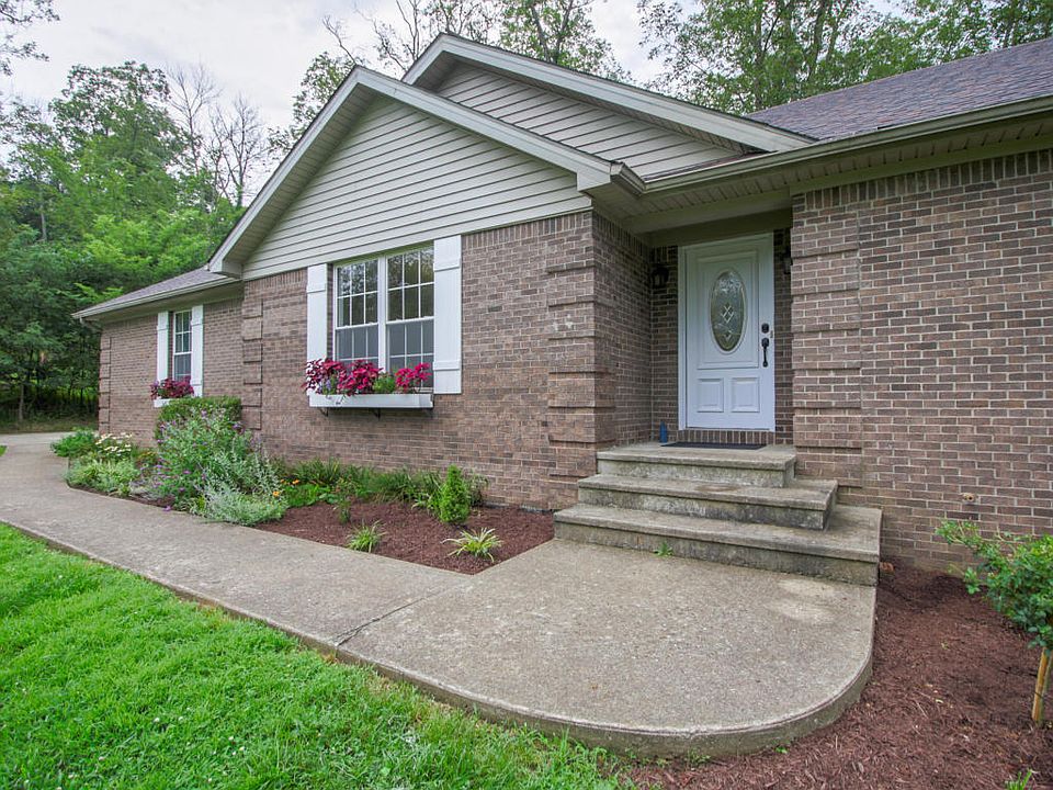This Remodeled all brick ranch home sits on an acre of land in desirable Oldham County. This 4 bedroom, 3 bath home is located in a quiet neighborhood in La Grange. Your new home is surrounded by beautiful landscape in the front and backyard. You are greeted with gorgeous bamboo flooring that flows throughout the entire main living space. The open concept home features an updated kitchen (Sellers are giving a $5000 appliance package so you can customize your appliances at closing) that leads to a formal dining area & great room that boasts cathedral ceilings. The large master bedroom soothes you with its fresh paint color. The trey ceilings adds a wonderful ambiance & the master bath includes double sinks, separate shower and inviting tub.