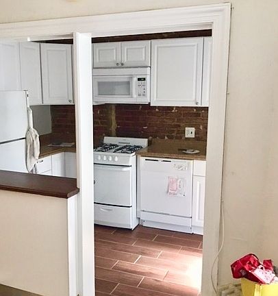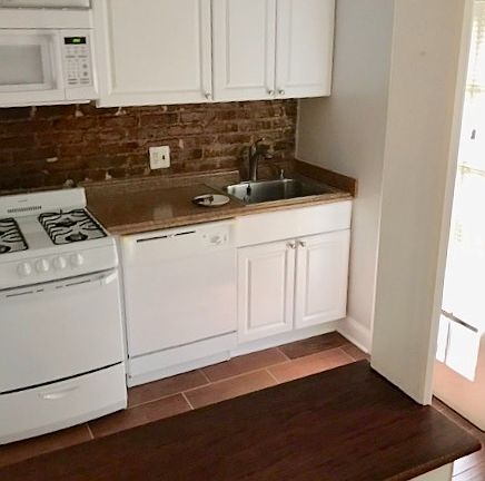 Renovated kitchen and bathroom! Enter ground level unit into small foyer on the main level. Spacious carpeted living room/dining room combo (20x14). Fully equipped kitchen includes gas range, dishwasher, microwave, and refrigerator. Small fenced in patio located off kitchen. Both bedrooms (12x11) share a hall bath. AC wall units in each room, along with radiator heat located in the unit. Laundry on each floor. Electric is a tenant responsibiity, as well as cable/phone/internet. Water and Gas is included in rent. No parking is included. Pets on a case by case basis.