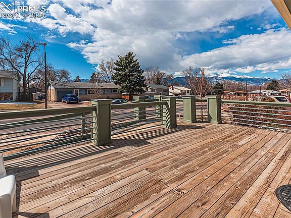 Come take a look at this lovely 5-bedroom 2-bathroom ranch style home with a 1 car garage in Southern Colorado Springs, using our 3D VIRTUAL TOUR! What a great exterior front deck this property has! Nice walk-up entrance leading to a large front deck that is perfect for entertaining, offering spectacular mountain views, and ample room for patio furniture. This home is near Chelton and S. Academy Roads giving access to many grocery stores, restaurants, parks, entertainment, and highway access. The airport is also conveniently located just a short car ride away. Head inside to an open kitchen with wood floors, nice appliances and a plethora of cabinetry. Living room is spacious with great natural light. The 3 bedrooms on the main level are spacious and have wood flooring. Bathroom is good size and offers good storage. Basement has a nice flow to it and offers 2 additional bedrooms and a bathroom. The utility room in the basement doubles as the laundry room. The backyard has a cozy covered patio area great for lounging and entertaining, is fully fenced with a shed, has access for RV Parking, and offers plenty of space for play, with additional areas for gardening and landscape desires. This property has an amazing exterior deck with views, and an awesome backyard – a great home for outside entertaining. Don’t miss your chance to come take a look!