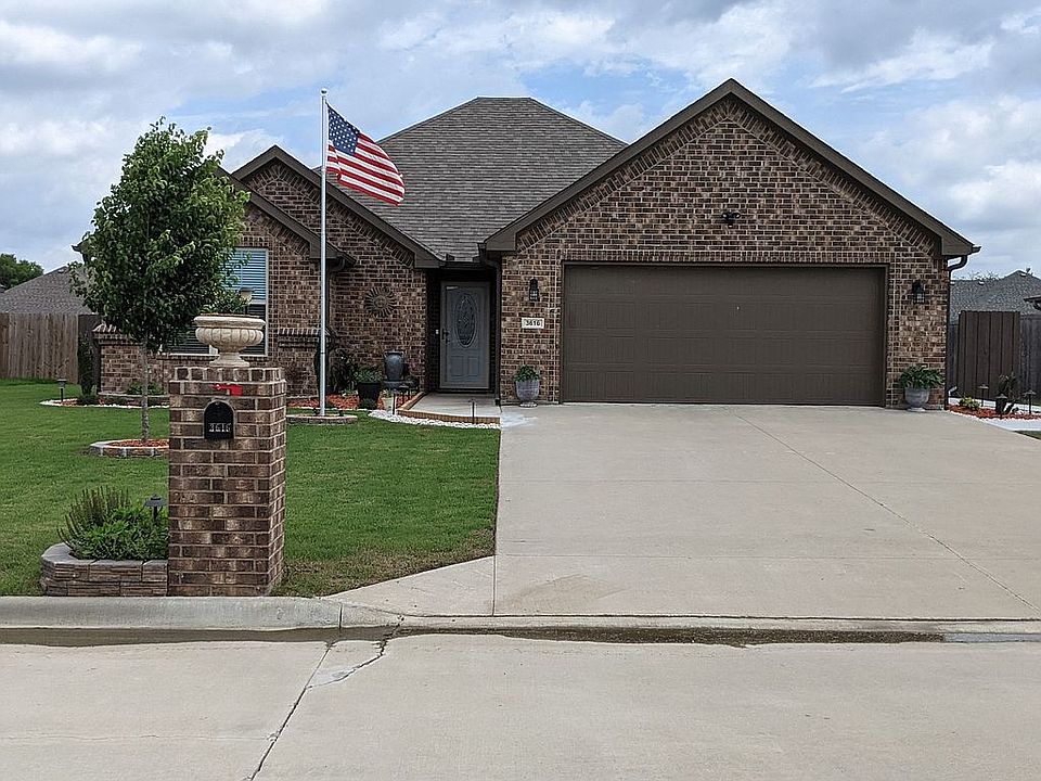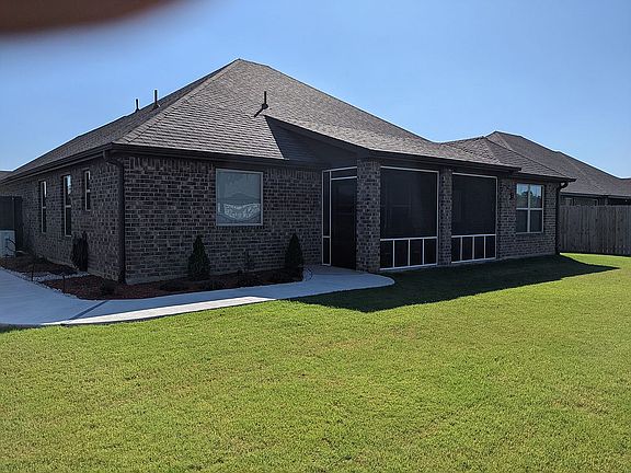 This 3-2-2 home features an open floor plan, split bedroom layout, luxury vinyl plank flooring, and a neutral color scheme. Thick granite countertops sit atop stained, raised panel knotty aspen cabinetry with oil-rubbed bronze faucets and hardware throughout the home. Crown moulding surrounds the ten foot ceilings in the entry foyer and living room. The Dining room features a tray ceiling and crown moulding. A large Master bedroom features a tray ceiling, double crown moulding, and a very large walk-in closet. The Master bath has a large shower with a custom tempered glass door, soaker tub, dual sinks, and his and her walk-in closets. Guest bedrooms have large walk-in closets. Energy-saving features include LED lighting, a high-efficiency Carrier Heat Pump, attic foam insulation, ceiling fans, and an induction range. This home has many other features including an in-garage large tornado shelter. Fully landscaped with front to rear sidewalk and landscape lighting. Close to shopping and easy access to major highways. By appointment only.