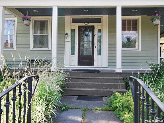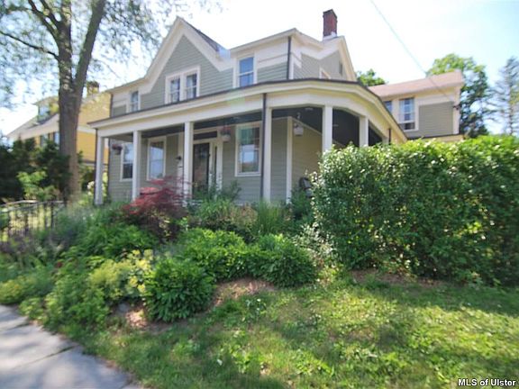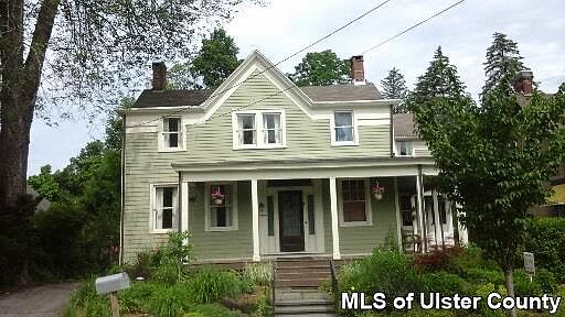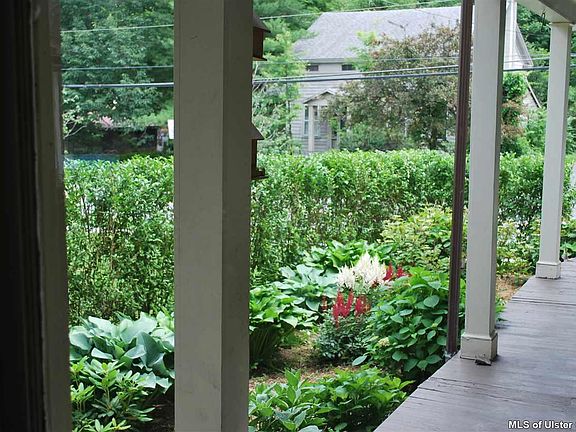 Live in one of the Hudson Valley's quaintest hamlets. Located in the Historic District in Stone Ridge, this four bedroom, 2 bathroom home with its blue stone paths, mature trees and gardens is simply charming. Built in 1875, this 2,495 square foot home is nestled on Main Street just steps away from both Stone Ridge's landmarks, businesses and minutes to UCCC. Situated on a 0.29 acre lot, perennial gardens compliment the wrap around front porch. Out back, there's a sun drenched deck, ideal for outdoor meals or soaking up rays, a fenced in level yard surrounded by shade gardens and mature trees. There is a renovated studio with cathedral ceilings-perfect for artists, writers or antique collectors. Main house features an upstairs kitchen with custom cabinets and farm sink. There is hardwood flooring throughout (refinished oak and stunning vintage wide plank), claw foot tub, antique woodwork and hardware throughout, and wavy glass windows which allow for endless streams of light. Separate entrances make working from home or starting a business a reality. Now is the time to write your own history in Stone Ridge.