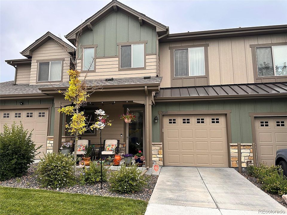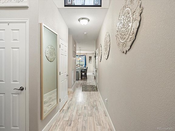 This well-appointed 3-bedroom, 3.5-bath townhome in the desirable Painted Ridge community is a must-see! Thoughtful design details throughout set this home apart from the rest. The main level is filled with natural light and offers peaceful views of a small park behind the property. Features include upgraded wood laminate flooring, a custom kitchen backsplash, stone countertops, and a stylish half-bath, along with floating shelves off the kitchen dining area. Upstairs, you'll find two spacious primary bedrooms. The main suite includes a custom walk-in closet and an oversized tub in the ensuite bath. This FINISHED basement provides a third bedroom, a full bathroom, and a high-ceiling media room—ideal for guests, a nanny, or additional living space. The attached single-car garage features a custom non-slip floor. Located in the highly rated Cherry Creek 5 School District, with Southlands Mall 5 miles away and multiple grocery and retail stores just over a mile away. The seller is including 5 flat screen TVs (2 x 65", 2 x 55",1 x 40"), approximately $4000+ value, and a $1500 garage storage system with mid-section work bench.