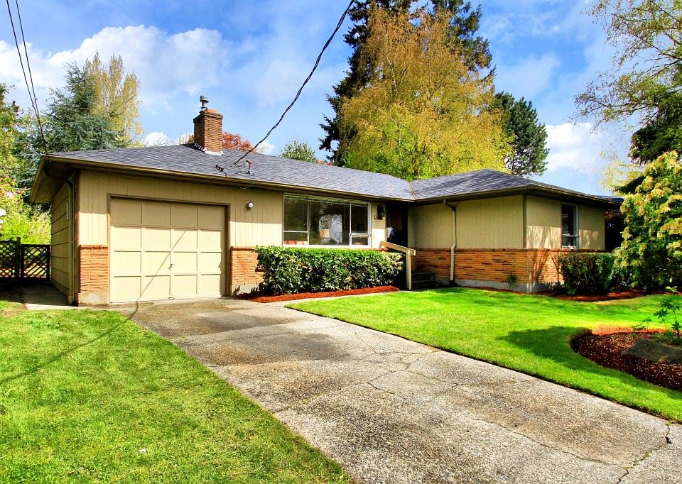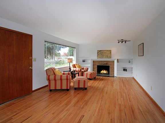 Wonderful rambler with sparkling refinished hardwood floors, fireplace, 3 bedrooms, fresh paint and attached garage. Bright and sunny interior with new hearth plus new tile and vanity in bath. Sliding doors to deck and patio. Big enclosed back yard with garden space too. Newer roof. Move in and enjoy!