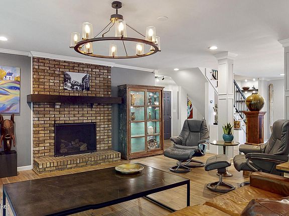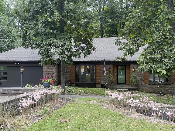 Welcome to this spectacular 5 bedroom, 5 bath home, tucked neatly on a beautiful, wooded lot with large windows that overlook a trickling waterfall, and yet is conveniently located off Highway 42 / Brownsboro Road, and is only minutes from the I-264 and I-265 interchanges, and local shopping and restaurants in Holiday Manor, Prospect, and the Brownsboro Road shopping area. This house blends modern high tech with its natural surroundings and has been impeccably maintained throughout the years. The kitchen is a chef's dream and is well appointed with top tier kitchen appliances to include an induction cooktop, and a built-in refrigerator from Thermador, and a built-in oven, built-in microwave, and dishwasher from Bosch. The second kitchen, located in the basement, features Bosch
