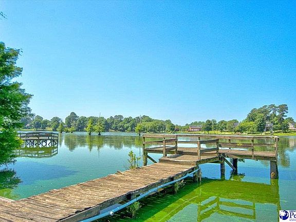 This sprawling custom ranch home, nestled in beautiful landscaping greets you with both Magnolia trees and Palm trees...The covered porch fancies a Southern welcome.Inside you'll quickly be drawn to the beautiful wood stained moldings that are reflected in every room. This is one of many custom details you'll admire in this well cared for home.Oak hardwood floors run throughout this home.The kitchen and all 3 baths have been remodeled within the recent 2 years.Including tile floors and granite counters. Beautiful oil rubbed bronze bath fixtures.And new lighting. No details were left out.The kitchen charms you with light colored quartz countertops,subway tiled backsplash and rich stained cabinets- also featuring pull out shelves and soft close drawers. The stainless steel appliances are also newer.Plantation shutters are featured in the Rec-room right off the kitchen. There you'll find plenty of space for friendly get togethers or a multi purpose room for the kids. To add warmth to this home a fireplace is located both in the kitchen and in the den where rich wood wainscotting surrounds the cozy gathering room. The Owners suite enchants you with custom built ins made of 3/4 inch plywood shelves to hold all your favorite books and even has a secret hiding place that you'll have to visit to see...I promise this is a fantastic surprise! There is a 5th bedroom/ or office off the Owners suite hall. Be sure to notice that flex space on your tour. The outside focuses on a warm weather paradise.Lets start with the pure vinyl decking with a built in gazebo and generous deck living space. The next spotlight is on a fabulous workshop with three different bays. It is powered with both 220amp service and 110 power. There is a exhaust fan for woodworking and several built ins. The sprinkler system is pumped from the lake so no need for a separate well. Visualize yourself fishing or kyaking on the lake while enjoying the birds and nature from your peaceful backyard. West Florence Schools and a beautiful neighborhood are calling you home. *The dock base is built with creosol telephone posts as is the free standing gazebo. The generous carport can house 3 cars.