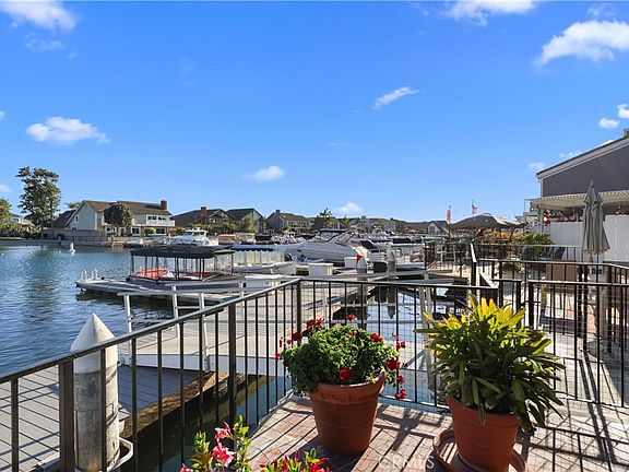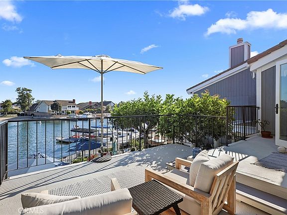 Summer is here and nowhere in Huntington Harbour will you find this much waterfront for under 3 million dollars. You have a 30 foot boat slip, that is all yours, right outside your backdoor; over 50 feet of unobstructed views of the water and the beach across the channel. AND the ability to rent a second boat slip to your left, if you choose. Nearly every inch of this home has been updated. The downstairs has wall to wall hardwood walnut flooring laid out in a parquet Versailles pattern. There is a modern element with a beautifully appointed concrete fireplace surround, fresh white paint with accent walls, modern entry chandelier and vaulted ceilings with wood beams. The primary bathroom is wall to wall marble with a walk-in in shower, dual shower heads and double vanities. The primary has a jaw dropping closet that is cedar lined and comes with pull down handles for ease of use and plenty of storage. Enjoy coffee on your expansive balcony right of the primary suite that overlooks the water. On the back patio facing the deep water, you will find a spa, built-in bbq and refrigerator and brick flooring underfoot that makes this area feel like an extension of the house. The fourth bedroom was converted to an office with beautiful wooden built ins but could be used as a 4th bedroom. The two large bi-fold patio doors open almost the entire South wall of the home and allow for ocean breezes and a wide view of the channel. Take your Duffy over to Pelican Isle for dinner, shopping or a quick stroll to the sand/ocean or PCH for easy access to more restaurants, nightlife and entertainment. Enjoy the Huntington Harbour Christmas boat parade from the comfort of your backyard! Summer is here. This home will not last!