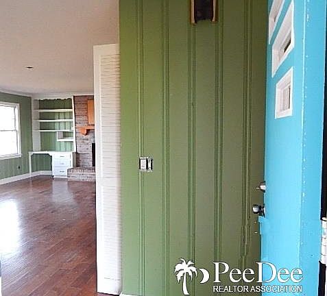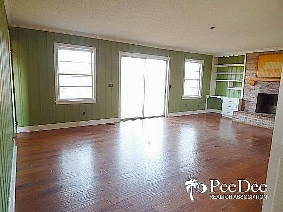 Looking for privacy and room to roam in Mullins? 1 story brick ranch style home located on approximately 1.82 acre lot - actual acreage to be confirmed by buyer's survey, 2015 taxes $451.36 owner occupant rate, built 1962 with updates, Great room with fireplace and built-ins, 4 bedrooms, 2 full baths, office/study with built-ins, hardwood floors, ceiling fans, large front deck; it's a diamond in the rough and priced to sell.