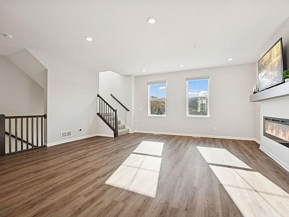 Welcome to this beautiful modern townhome offering 3 bedrooms, 3 bathrooms and an open floor plan with stylish finishes and plenty of natural light throughout. The main level features a bright living room with a modern fireplace, a dining area with access to the deck, and a beautiful kitchen with white cabinets, solid surface countertops, subway tile backsplash, stainless steel appliances and a large island with seating. The laundry room is also conveniently located on the main level. The upper level includes three comfortable bedrooms, a full bath, and a private primary suite with a double sink and a walk-in shower. The lower level adds flexible living space with walk-out access to the backyard - perfect for an office, gym or guest area. A spacious 2-car garage provides extra convenience and storage. Enjoy low-maintenance living in a newer community close to South Valley Park, riverfront trails along the Mississippi River and easy access to major routes including Highway 55.